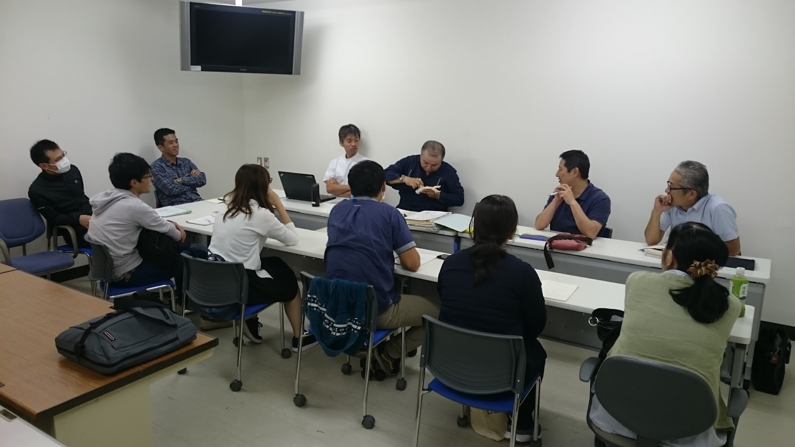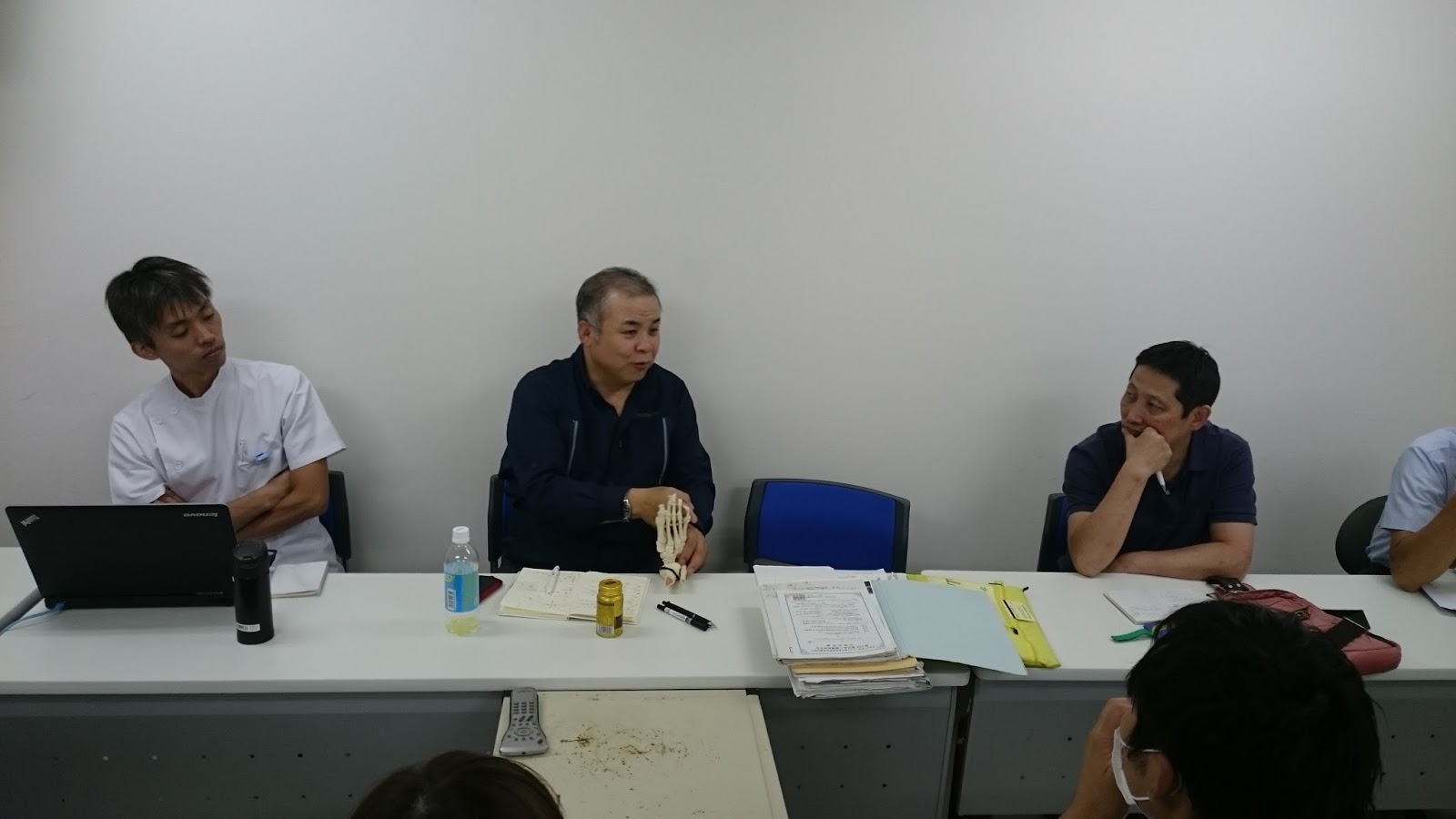 次回のテーマ「足関節撮影」について、世話人の松野下さん私物のファントムを用いて、撮影の方法や問題点を検討しました。世話人の意見を基に、次回研究会の内容を検討し、決定致しました。第7回の研究会のご案内は別途致します。